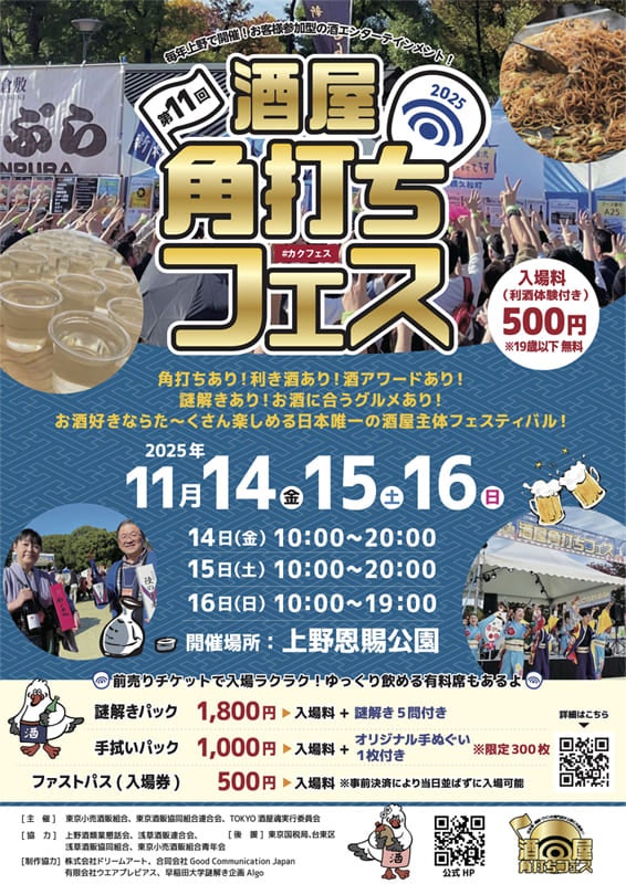 The 11th edition of the Kakuuchi Festival is set to be another boozy affair. ‘Kakuuchi’ refers to the bar that’s inside a liquor store and this festival in Ueno celebrates the kakuuchi culture by replicating the drinking style. Here, small bars serving up a selection of sake, shochu and wine will be attached to their respective liquor store booth. Additionally, there will be food stalls cooking up sweet and savory dishes to pair with your drinks.