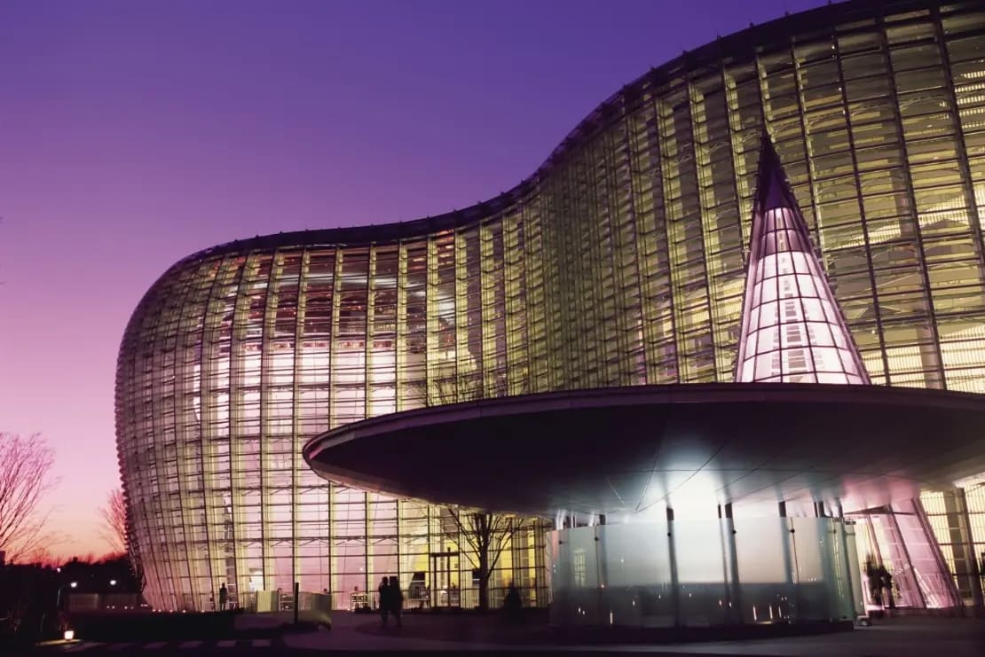 This art museum boasts one of the largest exhibition spaces in Japan. Nighttime lighting further enhances the beauty of the building’s colossal glass-walled structure.