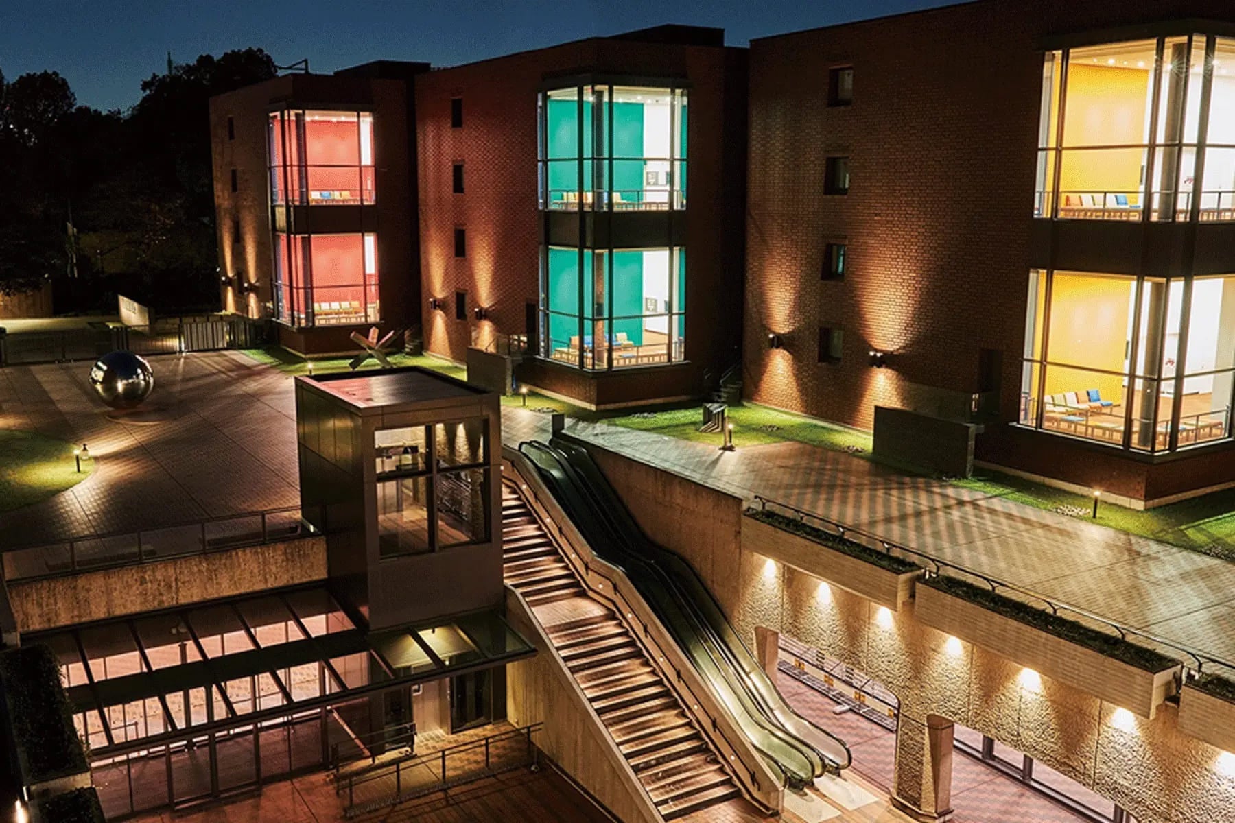 Japan’s first public art museum, opened in 1926. The museum stays open at night for special exhibitions, and the modernist building glows enigmatically in the dark. You can enter the building to use the restaurant, cafe, and museum shop without paying admission.