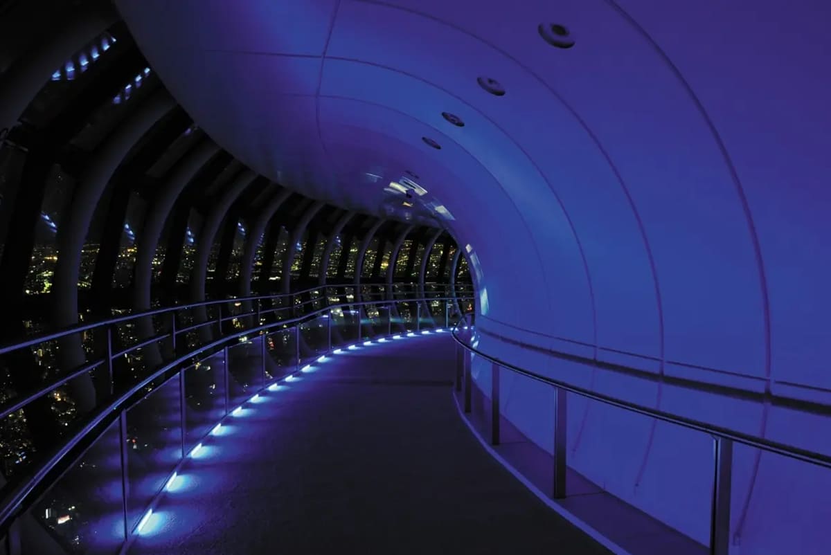 Tembo Deck, 350 meters above ground, and Tembo Galleria, 450 meters above ground, offer impressive views of Tokyo, including Tokyo Tower and the city’s iconic skyscrapers. Enjoy the feeling of walking in the sky, created by the large glass windows that let you gaze out at the streets below.