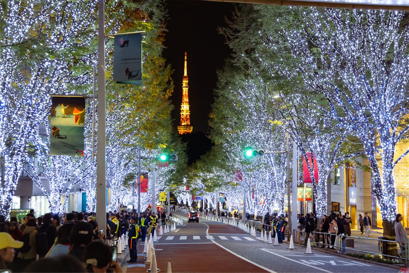 六本木の街に冬の訪れを告げる「けやき坂イルミネーション」が今年も開催。約400メートルにわたるけやき坂の温かな街の灯りと、「SNOW&BLUE」の光が溶け合う幻想的な光景は見逃せません。場所によっては、「東京タワー」とイルミネーションを一緒に写真を撮ることもできます。東京ならではの景色を観に行ってみてください。