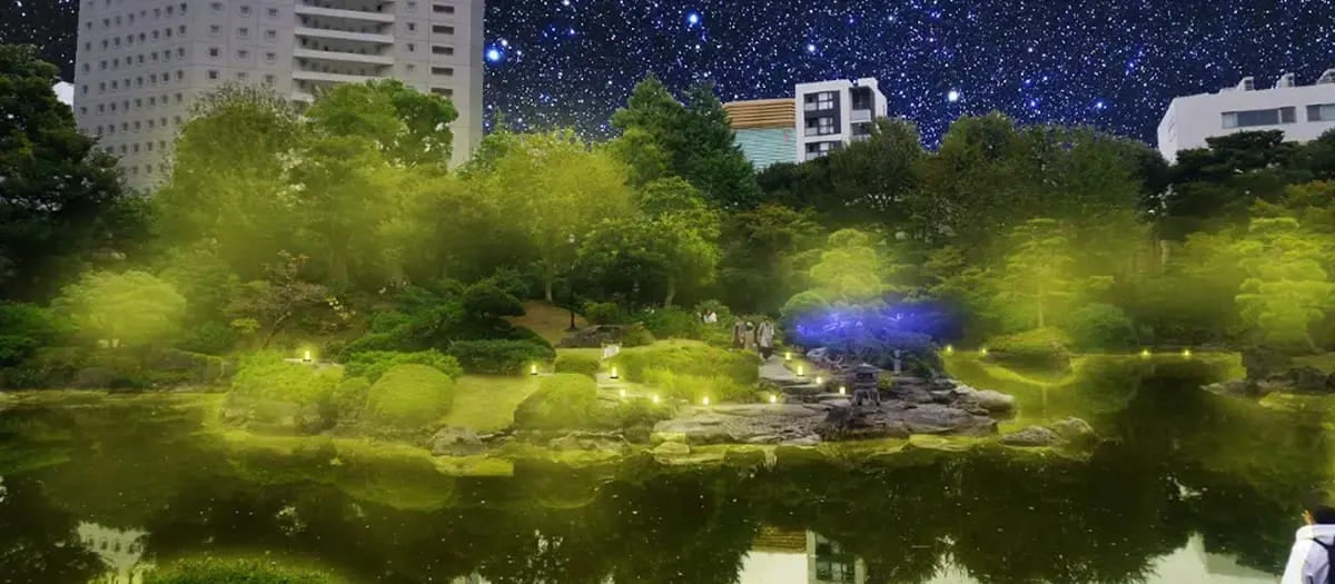 旧安田庭園ライトアップイメージ図(イベントは秋の紅葉シーズンです。)