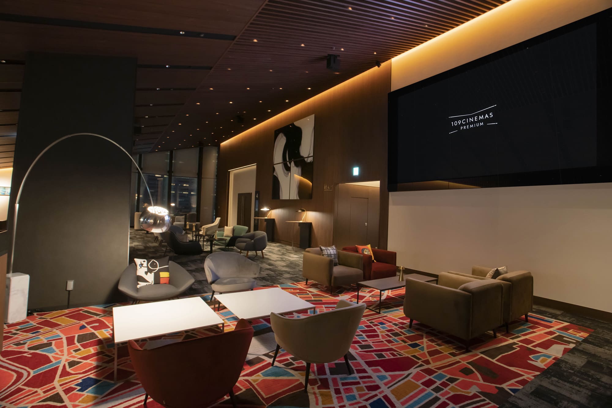 音楽家・坂本龍一監修の音響システムやシアター内の特別な座席など、上質な鑑賞環境を提供するシネマコンプレックス。エントランスを抜けると目の前に広がる「鑑賞者専用ラウンジ」は、映画上映の1時間前から利用できる。9階・10階はそれぞれに、新宿・歌舞伎町の街の色を感じさせるような印象的なアイテムやアート作品がちりばめられた空間。歌舞伎町の中心にありながらも喧騒から離れ、穏やかな時間を過ごしてから映画に没入しよう。