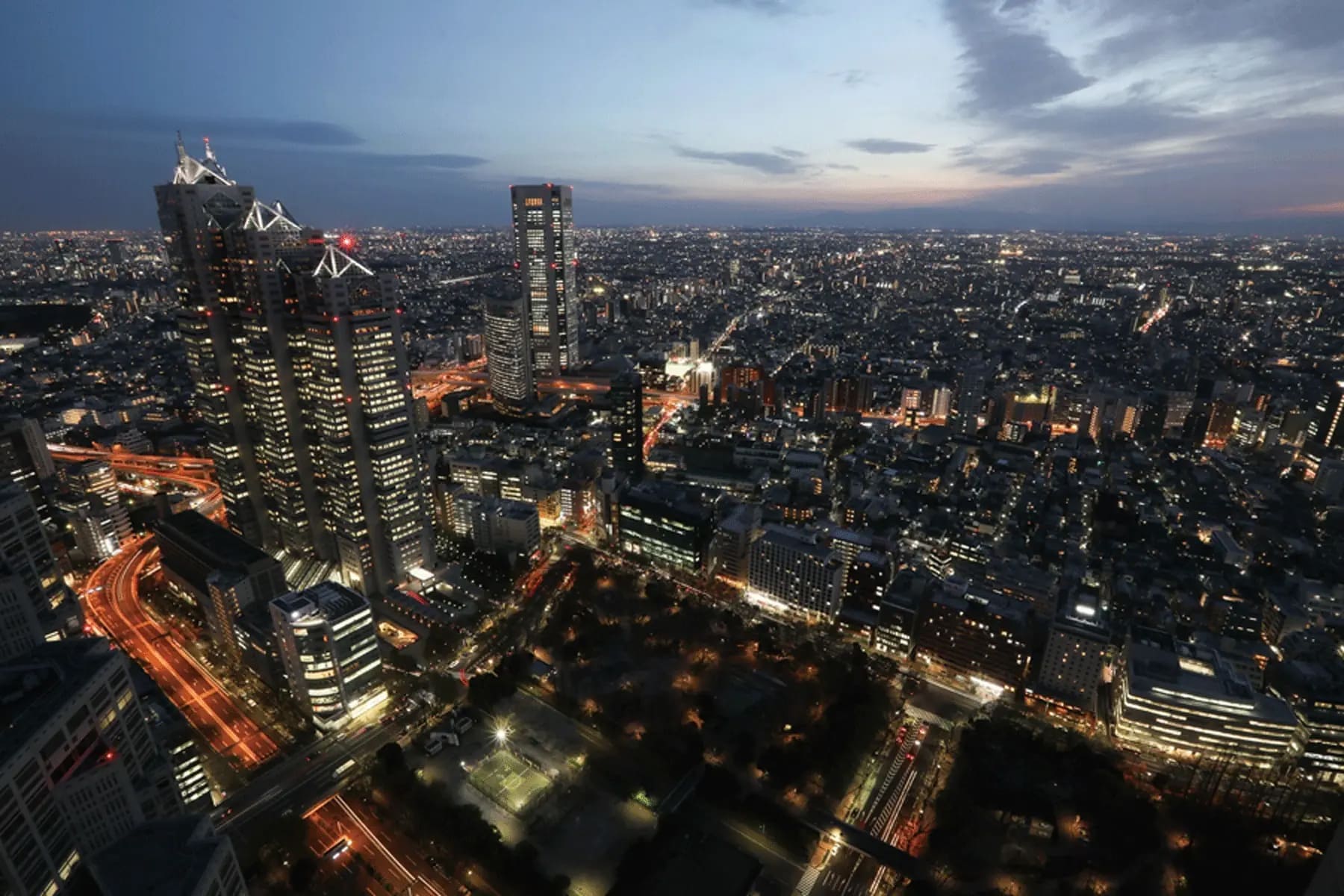 東京都庁第一本庁舎の45階にある展望室。南展望室は夜まで利用でき、新宿パークタワーや東京オペラシティなど新宿ならではの高層ビル夜景が無料で楽しめる。カフェも併設。